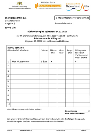 Anmeldeformular 47. Chorpraxis Chorverband Ulm