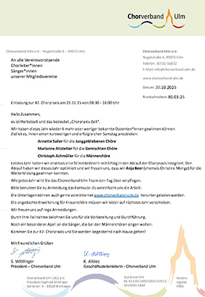 Die angedachte Erweiterung für Frauenchöre müssen wir leider auf nächstes Jahr verschieben.